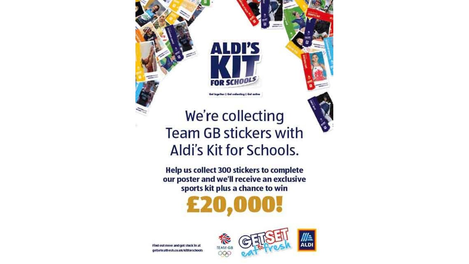 We’re collecting Team GB stickers with Aldi’s Kit for Schools. Help us collect 300 stickers to complete our poster and we’ll receive sports kit plus a chance to win £20,000.